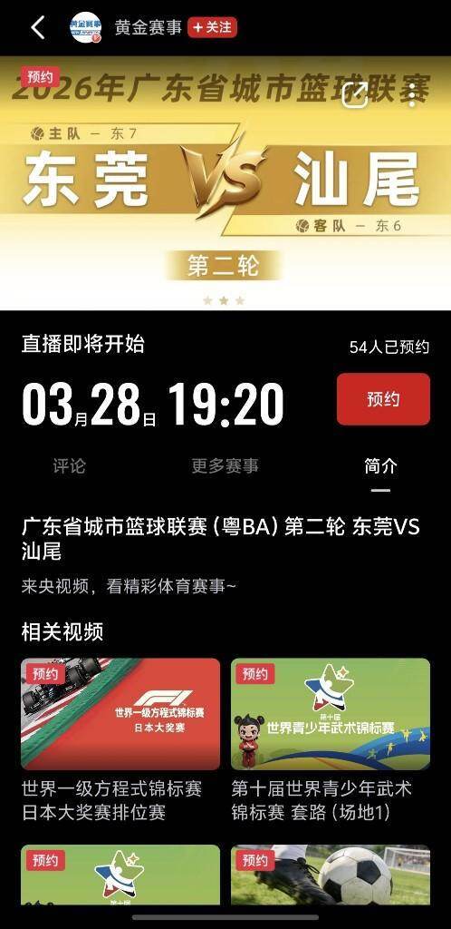 记者获悉,3月28日19时20分,央视频总台体育频道官方直播账号“黄金赛事”将聚焦广东省城市篮球联赛(粤BA)第二轮焦点战,全程直播东莞队与汕尾队的激烈对决。广大球迷可通过央视频客户端,共同见证这场充满激情的篮球较量。